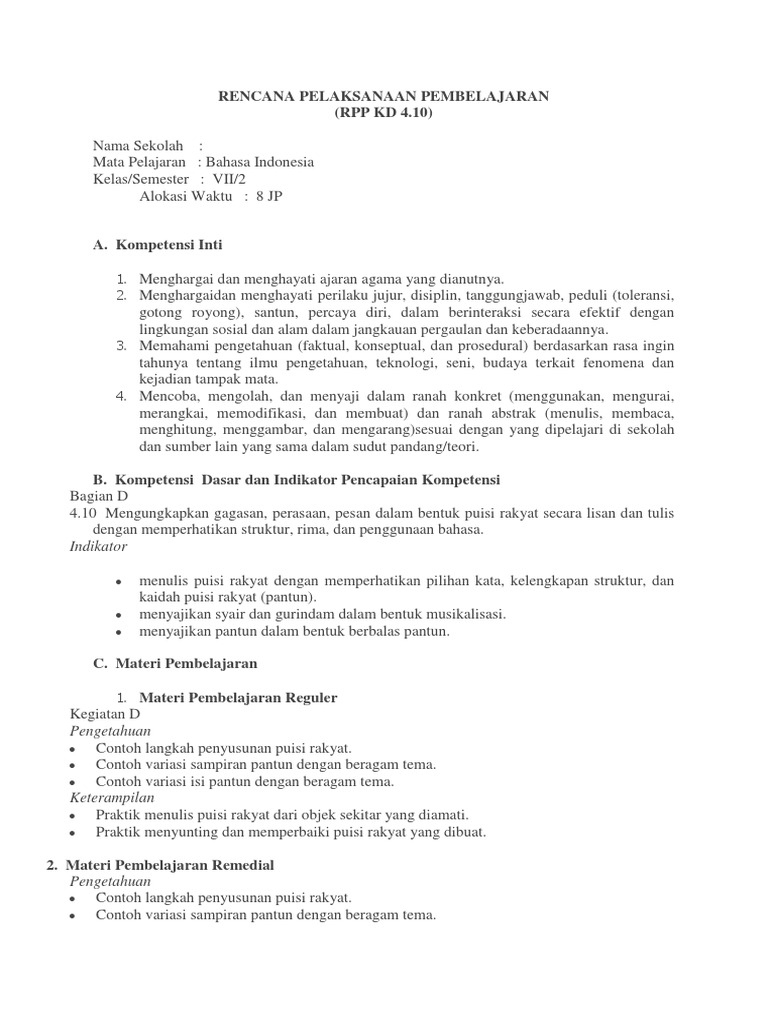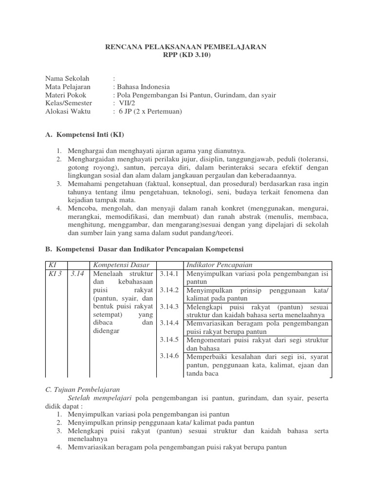 Larik 3 dan 4 merupakan satu kalimat majemuk. Tujuan hasil teks puisi nilai didaktis bahan ajar. Penilaian Keterampilan Berunjuk Karya dengan Puisi Rakyat Praktik menelaah struktur puisi rakyat Praktik melengkapi struktur puisi rakyat melengkapi bagian identifikasi gambaran umum deskripsi bagian Praktik memvariasikan beragam puisi rakyat pantun Praktik membuat telaah ketepatan struktur syarat pantun dan penggunaan bahasa pada puisi.