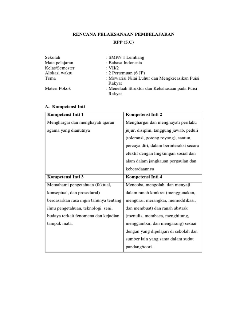 Aug 31 2018 Puisi rakyat disebut juga sebagai puisi lama atau puisi terikat terikat oleh aturan suku kata kata baris bait dan rima. Pada materi sebelumnya telah dijelaskan bahwa puisi rakyat merupakan kesusastraan rakyat warisan nenek moyang yang memiliki nilai-nilai dan berkembang dalam kehidupan masyarakat. Bahan ajar berupa modul untuk dapat.
