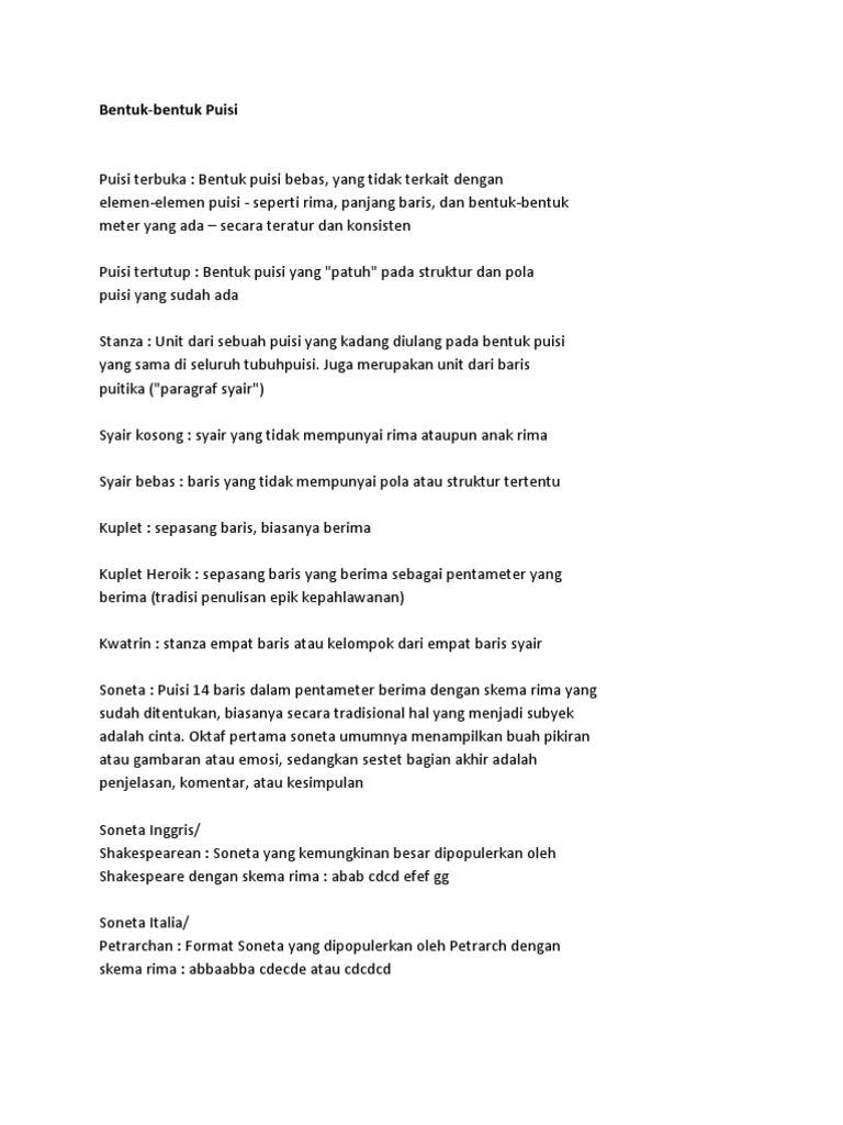 Materi Unsur Fisik Puisi dan Unsur Batin Puisi. Atau lebih dikenal dengan abab. Pada umumnya puisi dibagi menjadi 3 jenis puisi yang.