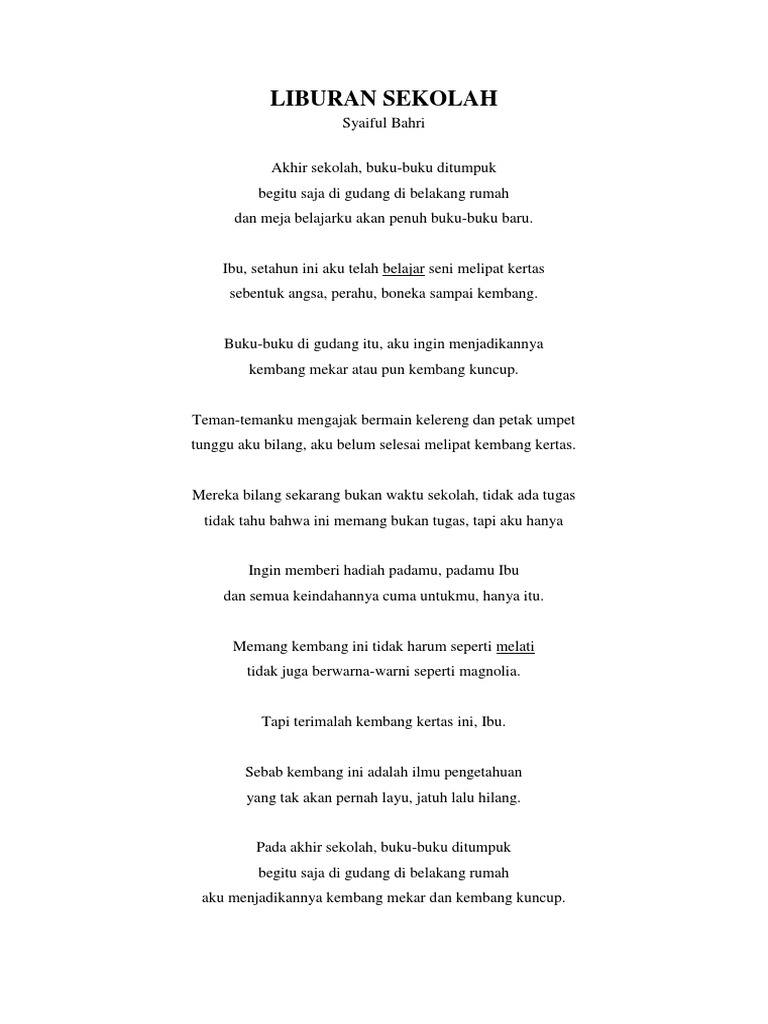 Kumpulan Puisi Liburan Sekolah For Android Apk Download