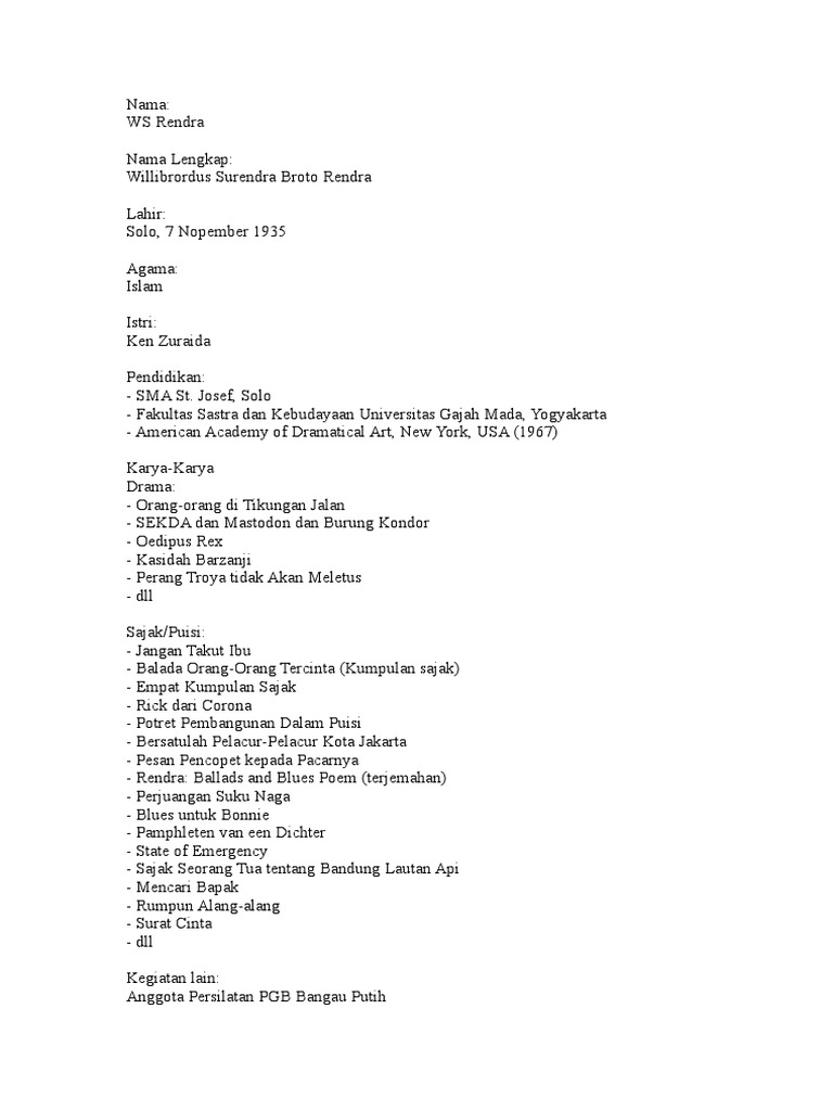 Kumpulan Puisi Ws Rendra Pengirim Message