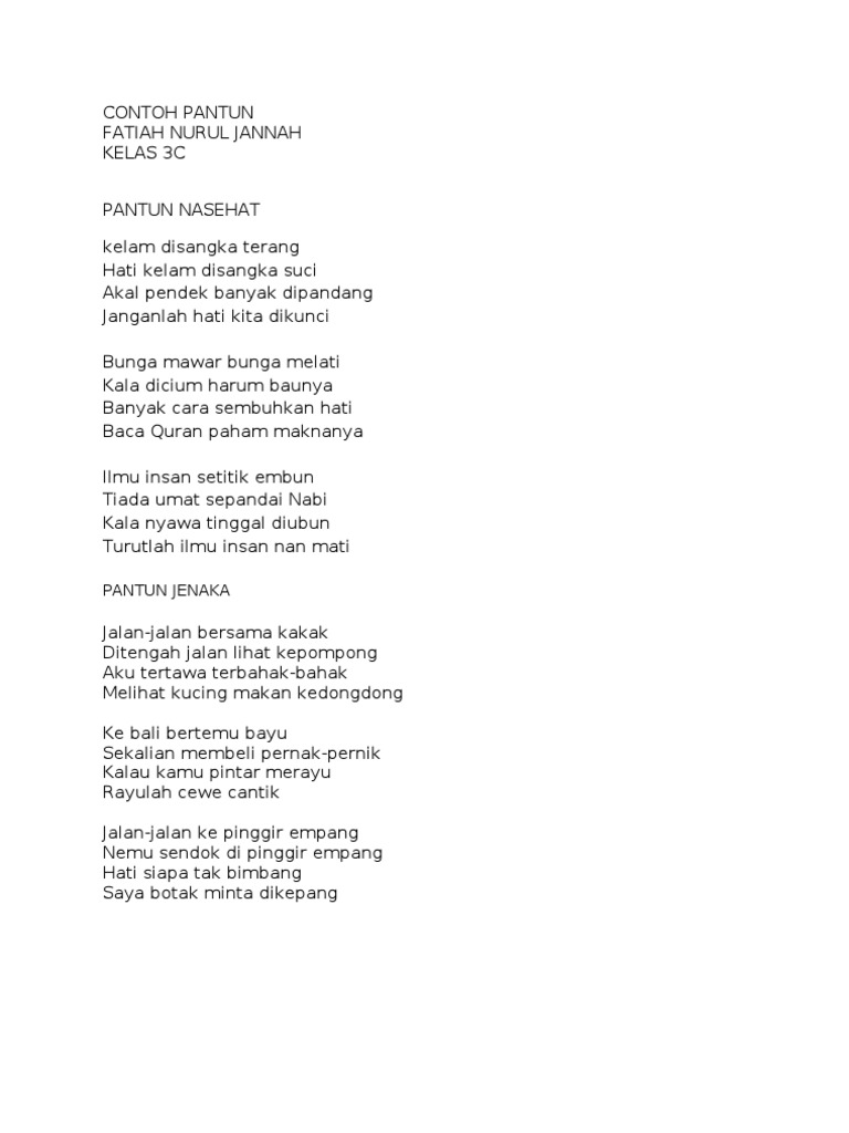 Jika anak tidak memiliki contoh Nanti akan terdistorsi. Nov 19 2016 Puisi lama dan puisi baru adalah dua jenis puisi yang dikategorikan dari masa pembuatannya serta struktur teknisnya. Nov 28 2020 Contoh Puisi Ode Pernahkah kalian mendengar jenis puisi ode.