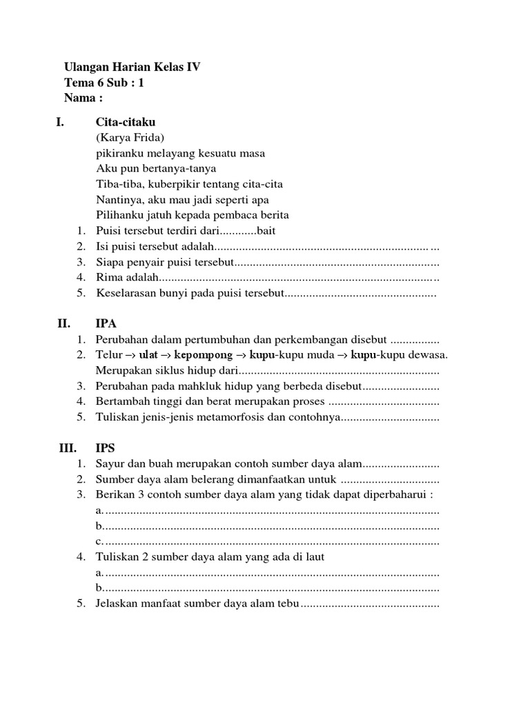 Jumlah baris pada puisi yang berjudul cita-cita adalah. Membuat puisi cita - cita berarti kamu menceritakan angan - anganmu terhadap cita - cita yang kamu pilih. Puisi berjudul cita cita puisi cita cita 4 bait 4 baris puisi 2 bait puisi bercita cita menjadi dokter puisi berantai tentang ilmu 4 orang puisi bertema cita cita puisi 2 bait tentang polisi puisi cita cita karya frida isi puisi tersebut adalah.